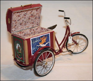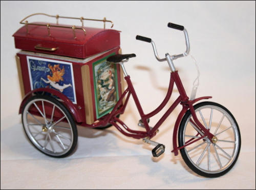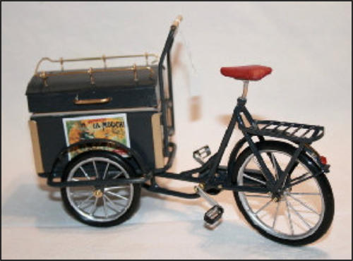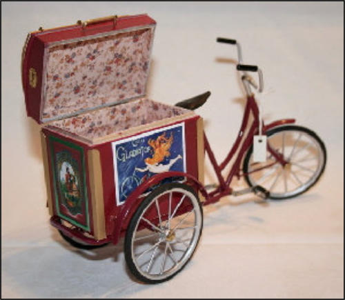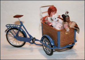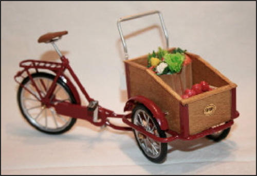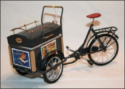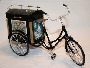 Die Idee, diese Räder anzufertigen, kam auch wieder aus einem Versandhauskatalog von 1901. Die spezielle Bezeichnung war:Transport-Dreirad.Hier ein Auszug aus der Beschreibung:Besonders starke und solide Bauart mit extra starken Pneumatics für ganz kurze Kurven resp. Drehungen eingerichtet Vollständig staubsichere Lagerung. Tragfähigkeit 200 kg.Ãhnliche Ausführung No 7, besonders für schwere Herren geeignet.