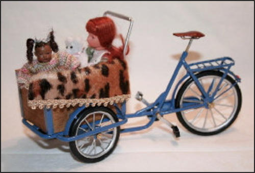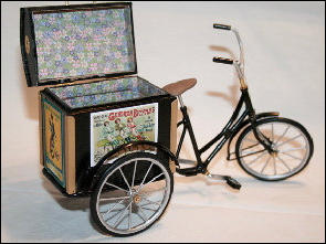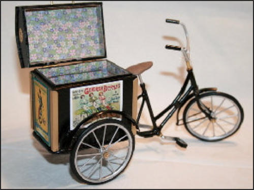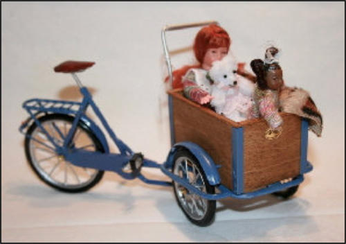 Die Idee, diese Räder anzufertigen, kam auch wieder aus einem Versandhauskatalog von 1901. Die spezielle Bezeichnung war: Transport-Dreirad.Hier ein Auszug aus der Beschreibung:Besonders starke und solide Bauart mit extra starken Pneumatics für ganz kurze Kurven resp. Drehungen eingerichtet Vollständig staubsichere Lagerung. Tragfähigkeit 200 kg.Ãhnliche Ausführung No 7, besonders für schwere Herren geeignet.