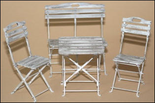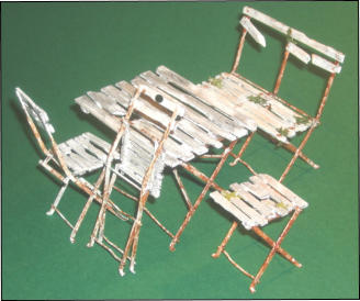 Was auch im echten Leben sehr oft vorkommt, Stühle und Tische, die mal wieder einen Anstrich vertragen könnten. Außerdem ein Überbleibsel aus längst vergangenen Tagen, prädestiniert z.B. für eine Gartenszene mit Unkraut und Wildwuchs!